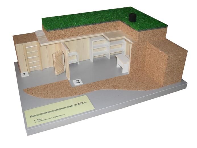 Назначение: Макеты средств коллективной защиты наглядно показывают общее устройство всех основных типов защитных сооружений.